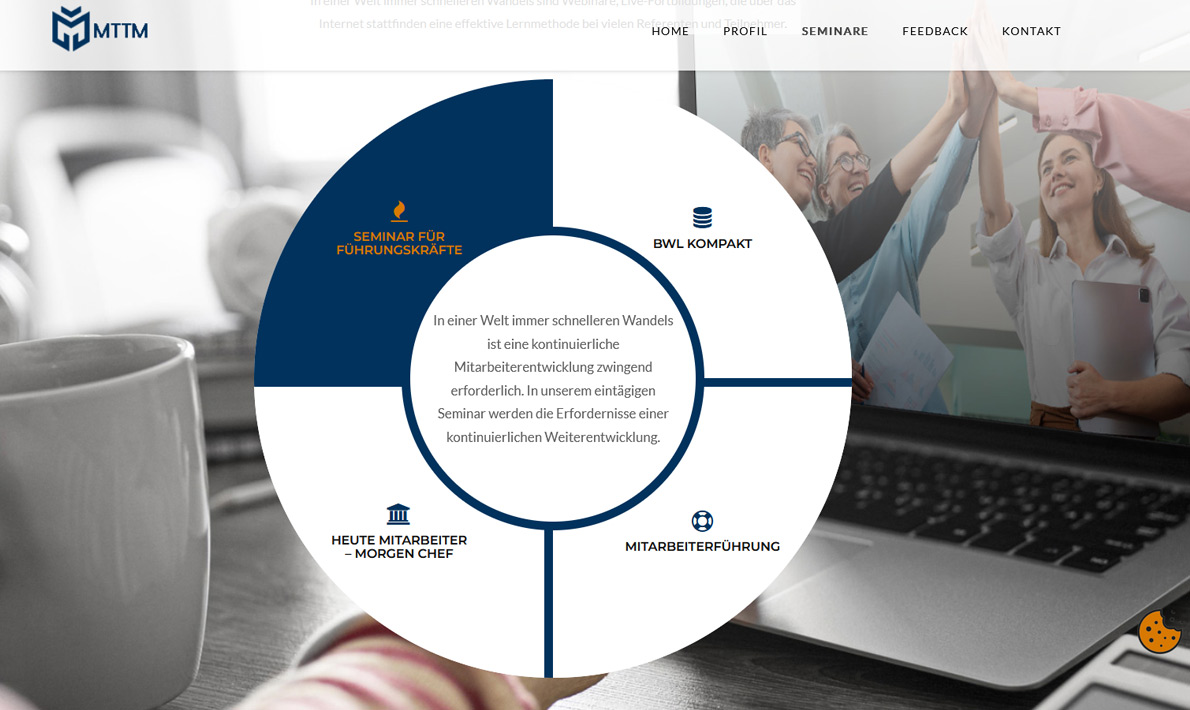 MTTM ist IHK Prüfungsausschussmitglied seit 2010 und unterstützt deutschlandweit kompetente Dienstleistungen an. Die Stärken liegen in der Konzeption und Durchführung von Seminaren sowie im Coaching zukünftiger Unternehmer in der Phase der Existenzgründung. Mit Kompetenz Erfahrung unterstüt MTTM kleinere und mittlere Betriebe in Fragen des demografischen Wandels.