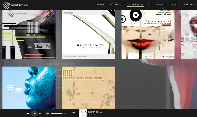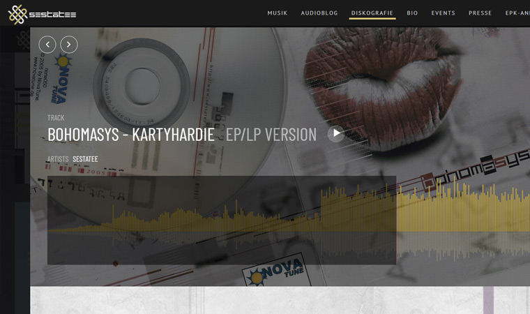 Seit Jahren besteht die SESTATEE Webseite. Dabei wurde eine grafische Darstellung und visuelle Konzeption mit vielen Komponenten von einem WordPress-System auf ein eigenes Kultur Webwerk CMS-System für Musiker und Bands migriert. Zudem wurde ein EPK-System (Electronic Press Kit) in das CMS integriert, um die Verwaltung und Kommunikation mit Labels & Veranstalter zu erleichtern.