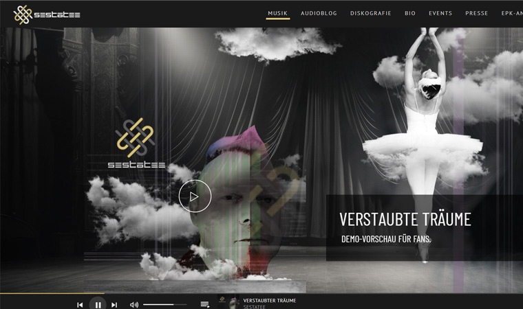 Seit Jahren besteht die SESTATEE Webseite. Dabei wurde eine grafische Darstellung und visuelle Konzeption mit vielen Komponenten von einem WordPress-System auf ein eigenes Kultur Webwerk CMS-System für Musiker und Bands migriert. Zudem wurde ein EPK-System (Electronic Press Kit) in das CMS integriert, um die Verwaltung und Kommunikation mit Labels & Veranstalter zu erleichtern.